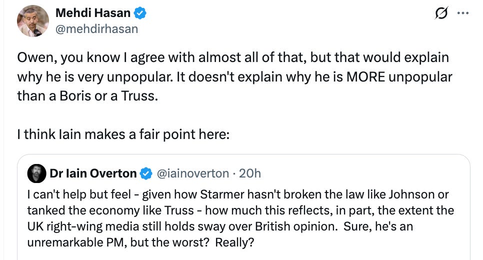 My friend Mehdi Hasan - who I must emphasise is absolutely not a centrist, and is a bona fide critic of Starmer - responded to these figures with a perfectly reasonable question: