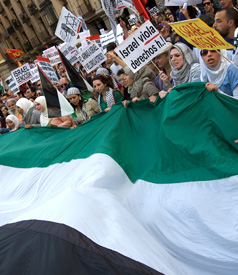 This protest in Madrid, Spain, is one of many worldwide that are expressing outrage against Israel's raid on humanitarian flotillas headed for Gaza. (Photo: Carlos Barbudo)