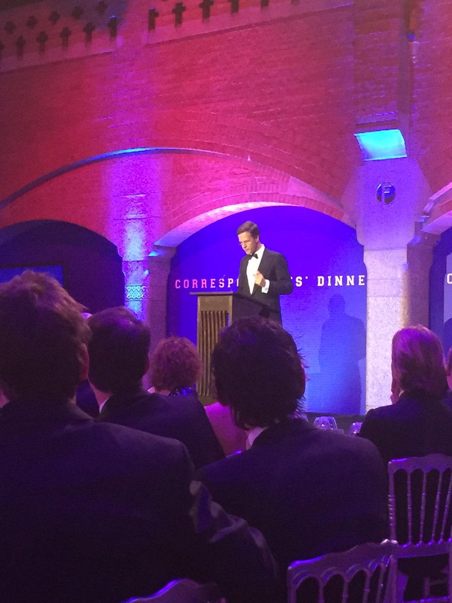 'Deze avond heeft een bijzonder businessmodel. Journalisten die betalen om naar de minister-president te luisteren, terwijl dat 364 dagen per jaar gratis kan. Dat is bijna net zo iets als betalen voor een krant.