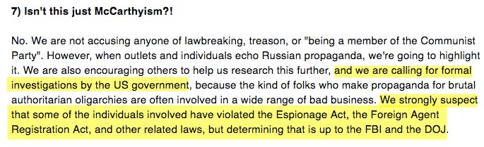 WPost's anon source: this isn't McCarthyism! We just want FBI to investigate US news orgs for pro-Russia espionage http://www.propornot.com/p/frequently-asked-questions.html …