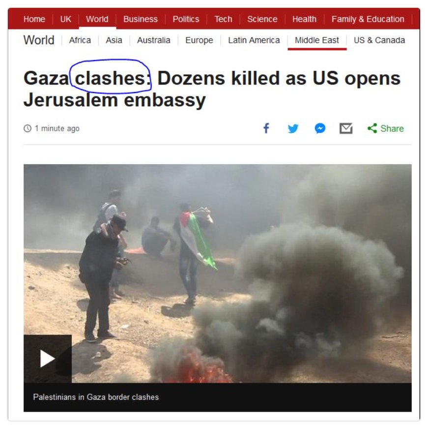 Make no mistake, this is a deliberate, conscious effort by the BBC to obscure who is killing and who is being killed. How do we know? Beause BBC editors cannot possibly be unaware of the intense debate surrounding this misuse of language in recent weeks.