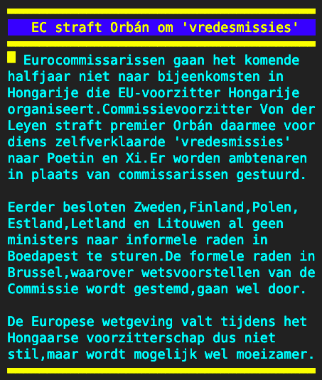 Europa anno 2024. Zij die naar vrede streven krijgen straf. Zij die oorlog willen, worden beloond: