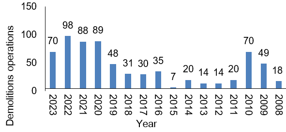 Self-Demolitions in Jerusalem Governorate 2008 - 2023