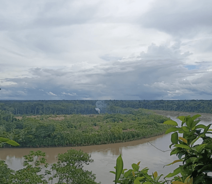 Smoke from a mining encampment on the Madre de Dios river.