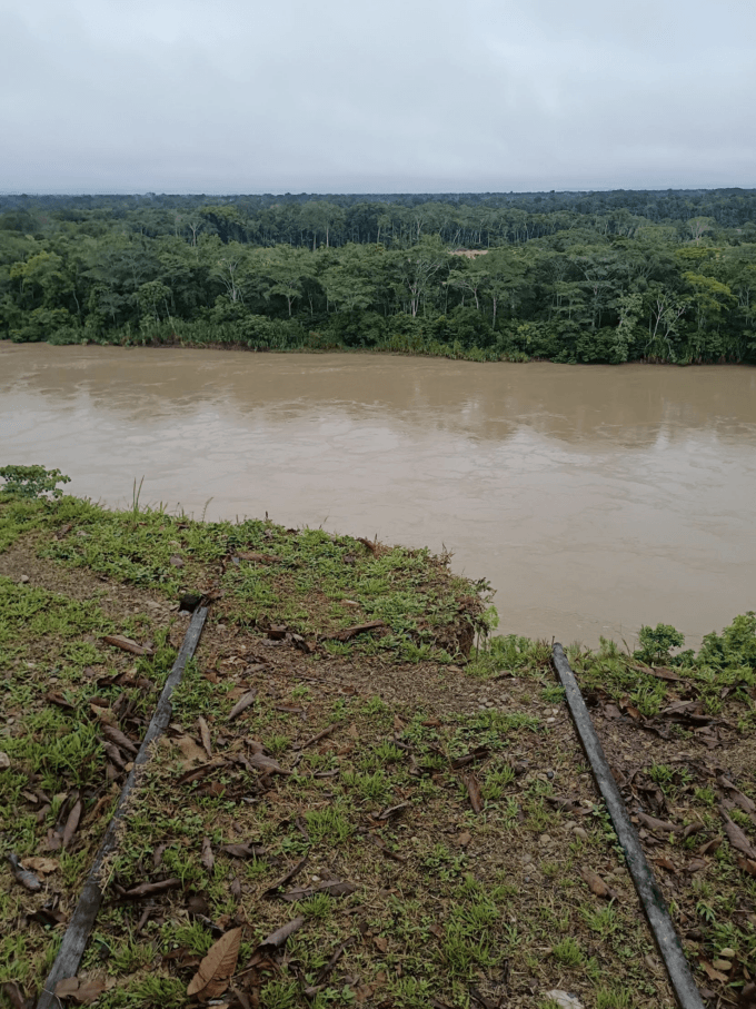 The Los Amigos biological station is perched at the top of a hundred-foot-tall cliff of red clay on the north bank of the Madre de Dios River in southeastern Perú. The river below seethes and purls, roiling as it makes a sharp turn, the centrifugal force of its flow digging it further into the bank. The trunks of fallen trees rise upside down from the water below, the clay clinging to their roots, held upright in the afternoon sun.