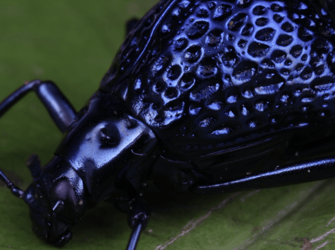 On the way back to the station from the river at dusk, we saw two of the grad students from a Colombian group kneeling in the forest about twenty paces off the trail. We waved and asked if we could come over; they nodded. As we approached, we could hear a low hum, mobile and dopplering through the deepening shade. Small shapes were orbiting the copse of small trees where the students were bent over a shallow pit. Something the size of a golf ball hit me in the chest, and I looked down. A vividly gunmetal-blue scarab was clinging to the damp nylon of my shirt. I left it there and greeted the two Colombians, who were sitting on either side of a hunk of rank chicken breast lashed with nylon cord to a short stick. In front of the piece of chicken, a sheet of clear acrylic descended down one of the walls of the pit, and behind it, the awkward forms of more dung beetles could be seen scrabbling through rough tunnels. I plucked the beetle from my shirt to try to get a better look at it. It refused my grip and used the surprisingly sharp spikes on its forelimbs to lever itself out of my fingers, muscular and extremely dense, prying itself loose and tumbling to the ground, where I bent to grab it again. I tried to hold it by its glittering thorax, but it reached up to thrust my fingers apart. I noted that it had torn off its tarsi, the small end-limbs that all beetles and most insects have at the ends of their legs, a series of linked lozenges with hooks at the end that grip. I couldn’t prevent it from moving, and the spikes were quite painful. I dropped it next to the lump of chicken as another came roaring out of the gloom to collide with the corner of the acrylic sheet and tumble off into the duff like a limbed cannonball.