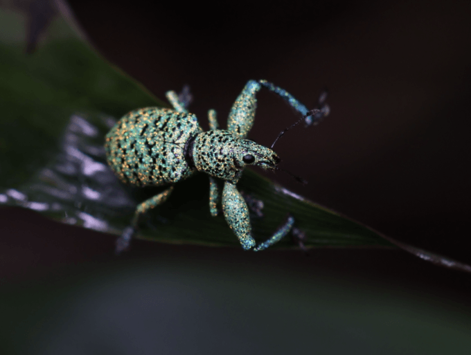 The science happening all around me was all well and good, but my interest lay at a slightly orthogonal position to that of the group, namely with the insects. I’m an artist and an extremely amateur entomologist, and my interest in this whole expedition had been principally as a way to get closer to the impossibly high levels of arthropod diversity found in the Amazon in general. My relationship to insects has several levels; I’m curious about the complex biological networks they encompass, and their bewildering behavioral and reproductive complexity as well as how they eat and are eaten by all the other organisms that surround them, but I’m also a glutton for the aesthetics. I use a 60 mm macro lens and a rather annoying and janky dual flash rig to get as close as I can to as many of the small world denizens as possible, sometimes seeking to capture them in forms of microscopic portraiture, but often just seeking to approach so intimately that their strange integuments and their appendages billow up in rippled sheens of metallicized acrylic, the geometry of compound eyes bristling with ultrafine hairs and the obscenity of their lush, hypersexual jaws yawning open and clattering with sounds that seem, at that magnification, like they should shake the trees. My appreciation of them happens at the level of pattern and texture, as complex assemblage of sculptural forms and units, as engines of desire and destruction, and as food for the larger world that reassembles itself around me as I sit up out of the mud, where I have been crawling gently forward to press the distal end of my lens towards a still figure sitting just underanimate on a slick and waxy leaf. I find that my boundaries blur down there, and in the Amazon, the opportunities for that loss of self often seem more numerous than the stars in the sky.