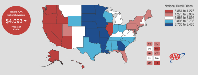 + The national average price of gas per gallon, according to AAA, when Trump told this whopper, was $4.09 a gallon. It was $4.992 a gallon in Oregon and $5.o3 a gallon here in the Portland metro area.