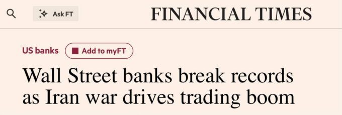 + In Trump’s America (as in most previous versions of America), crime pays. But war crimes pay better. JP Morgan Chase, Citigroup and Wells Fargo reported more than $25 billion in profits for the first quarter…